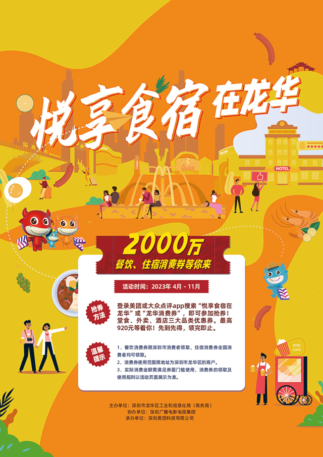 2023年龙华区“悦享食宿在龙华”促消费活动第一轮消费券将于4月27日中午12点开抢!