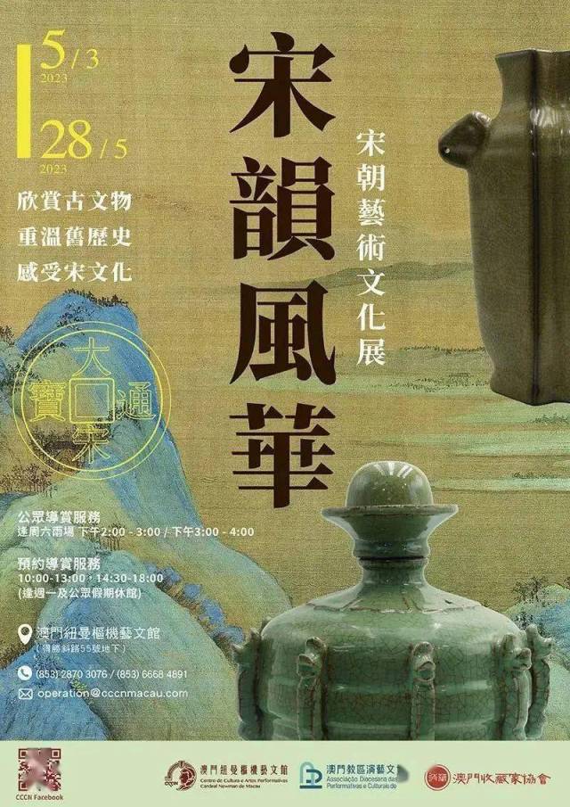 看点:展览邀请澳门收藏家协会借出30多件珍品,透过宋瓷、宋茶、宋画、经济文化钱币、宋皇朝与港澳关系等六个主题,展现宋朝历史的韵味,传递深厚的中华民族历史文化底蕴。