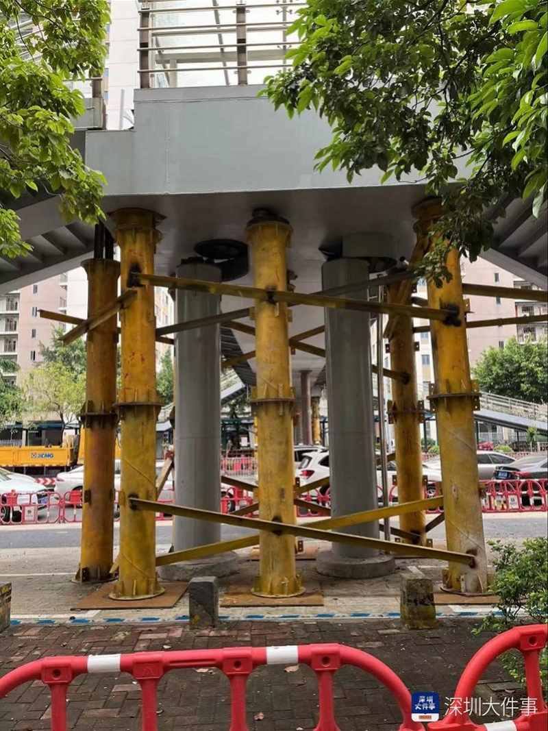 就此事,南都记者采访了深圳市交通运输局龙华管理局。相关工作人员回复称,事故发生后,为减少对地面交通造成的影响,已最快速度对天桥两侧的柱墩进行了临时加固,在消除安全隐患后于事发后第三日开放了地面交通,同时开展对天桥的检测维修工作。