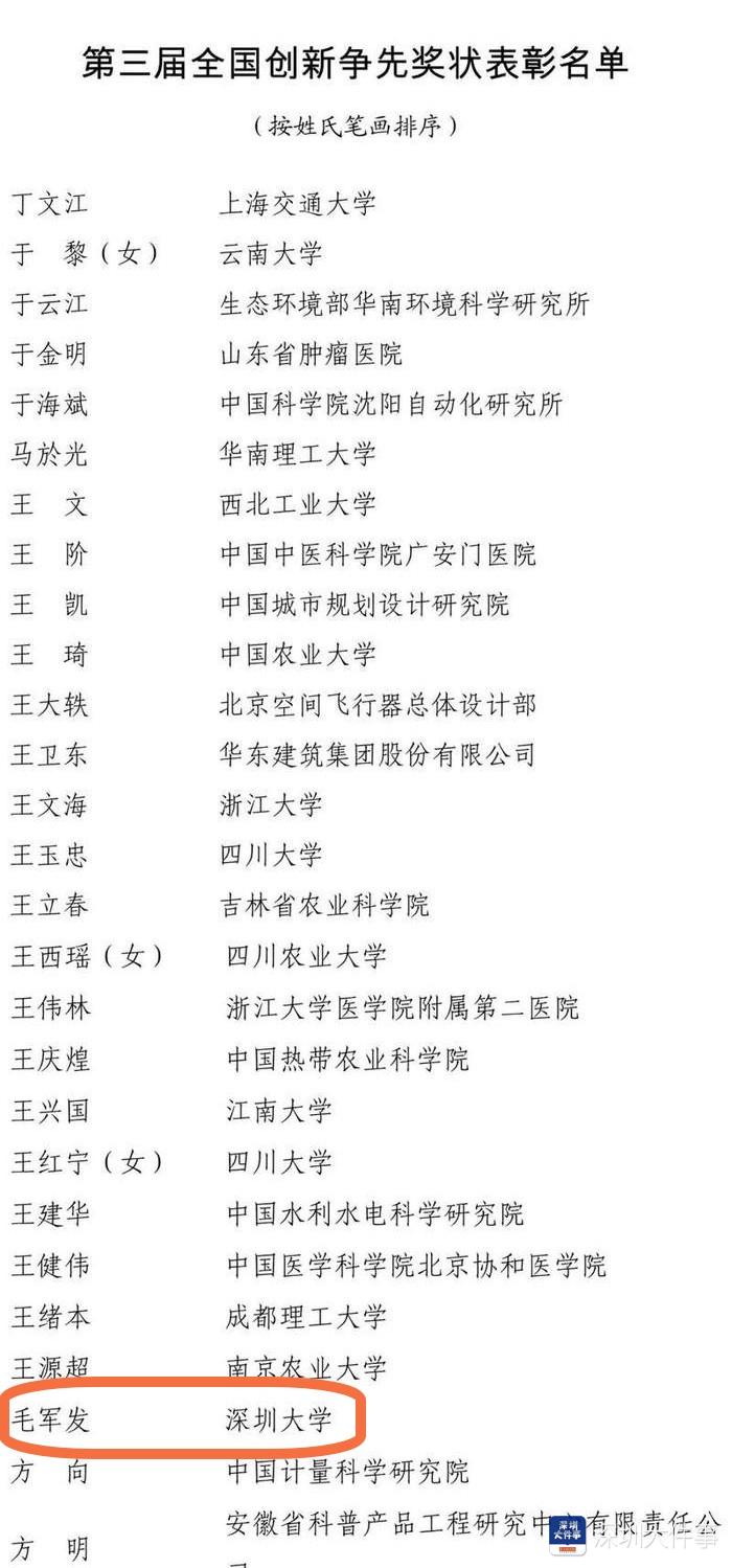 5月30日是第七个“全国科技工作者日”,庆祝全国科技工作者日暨全国创新争先奖表彰大会在国家科技传播中心隆重举行。大会上,人力资源和社会保障部、中国科协、科技部、国务院国资委公布了第三届全国创新争先奖获奖名单。深圳大学校长、中国科学院院士毛军发获第三届全国创新争先奖状。