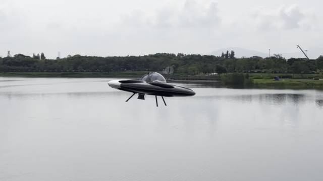 据了解,经过三年多的研发,深圳幽浮飞碟科技制造出了全球第一架电动垂起载人飞碟。飞行器包含六孔涵道12个桨叶电机结构,从电源、动力电机、飞行控制等多方面实现三重安全冗余,结合外形特点,可以实现在水面起降,具备水陆两栖功能。