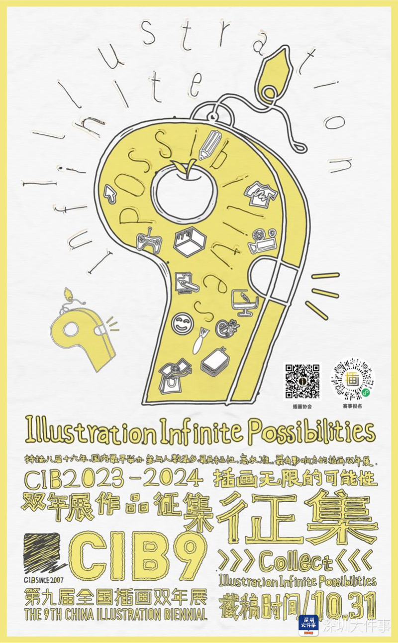 全国插画双年展CIB 充分展现中国原创插画力量 全国插画双年展CIB是自2007年起举办的全国性插画大赛,已成功举办八届。纵观16年来8届插画双年展,CIB重新定义了插画,从规模和影响力都在逐年提升。参赛人次超过30000,历届应征作品超过300000余件套,入围作品近5000件套。已巡回深圳、上海、武汉、西安、成都、烟台、广州、香港、澳门、东莞、珠海、桂林、福州、南昌以及日本东京等地展出,充分展现中国原创插画力量。 16年的厚积薄发,5800多个日夜的艰苦奋斗,历届CIB靠着过硬的专业素质和良好的观众口碑累积获得千万级传播曝光。就CIB8展览数据显示,730天的展览活动周期中,实际参与观展人流达200万,传播覆盖流量破亿。CIB不仅为中国原创插画师提供了一个大放异彩的专业舞台,更作为一个重要的插画展示平台被社会大众认可、受到高度关注。来自世界各地的专业组织和国际评委,都充分肯定了中国插画这些年的长足进步,成为国内插画艺术行业极具影响力的双年大展。 16年来,CIB与中国插画同行,发掘推出优质插画人才,让中国插画与世界链接,探索插画无限的可能性。 第九届全国插画双年展 看见插画无限的可能性 第九届全国插画双年展主征集正式启动,掀起新一轮原创插画浪潮。本届主题是“Infinite Possibilities”,意为“插画无限的可能性”,即自由地呈现插画无边、无界、无限可能性,探索插画潜力的无限性、未来的可能性,相信插画师无限的能力和创造力。 在此基础上,CIB9征集组别分为专业组和学生组,专业组为18周岁以上参赛者,学生组为16周岁以上高中专及高校在校学生。参赛类别将延续以往的5大类别,包括出版物类,即出版物内使用的插画。如书籍、期刊、封面内页、科学插图等载体的插画应用;商业应用类,即已商业应用的插画。如用于商业广告、企业形象、ip潮玩、产品、服装、空间、包装等领域的插画应用;新媒介应用类,在互联网、游戏、交互界面、影像、动画的插画应用;自由创作类,即未发表、未商用的个人原创插画作品以及与商业机构、艺术机构联合发起主题类作品竞赛。需要注意的是,在无特殊说明的情况下CIB9所有参赛类别不接受人工智能生成内容(AIGC)参赛。 CIB9作品征集的截稿时间为2023年10月31日,符合专业组和学生组规定的中国公民均可在插画加小程序报名参与,其中主题类不限制参赛者国籍。作品于2021年12月之后已发表和未发表作品可同时参赛,参赛作品应确保系原创内容,拥有完整,明确,无争议的著作权,无素材、创意剽窃行为,不得侵犯任何第三方著作权、肖像权、商标权及其他知识产权等合法权益。 本次大赛评审结果将于2023年12月20日-30日公布,届时将评选出全场大奖、金银铜奖、评委奖、类别佳作奖、优秀奖、入围奖及指导教师奖、组织机构奖等。CIB9计划在国内举办盛大的颁奖典礼,优质的获奖作品将收录至《第九届全国插画双年展》图录并进行出版,同时计划进行国际性展览的平行展、全国巡展及海外巡展。 CIB全国高校路演开始 促进中国原创插画行业的发展 伴随CIB9征集启动,2023-2024年度CIB全国高校路演正式开始。CIB9期间,深圳市插画协会、全国插画双年展组委会将陆续走进全国各大高校,向广大插画类、艺术类学子进行大赛征集宣讲,共创插画未来的无限可能性。