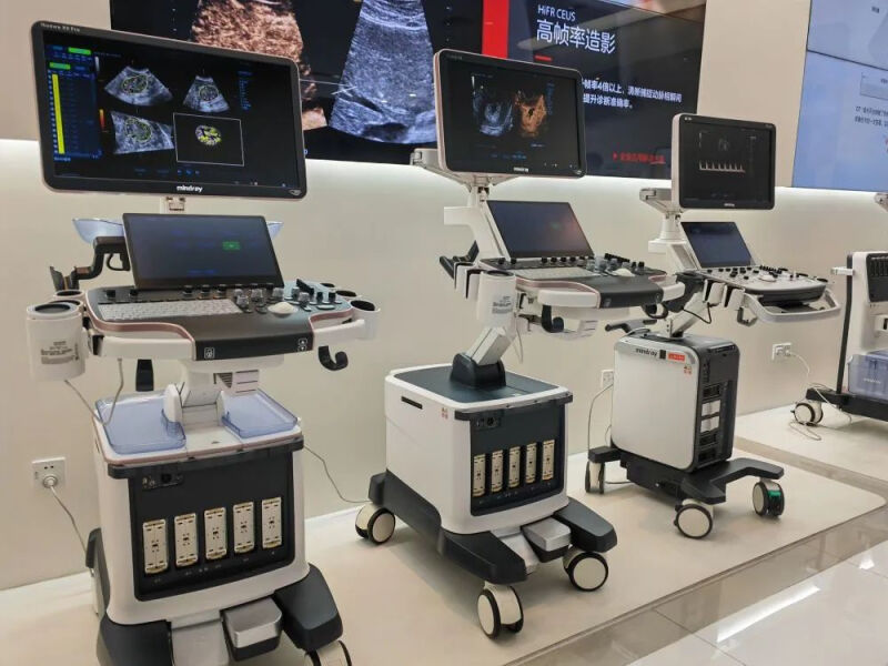 图为迈瑞医疗展厅内陈列的医疗器械。新华社记者 周颖 摄